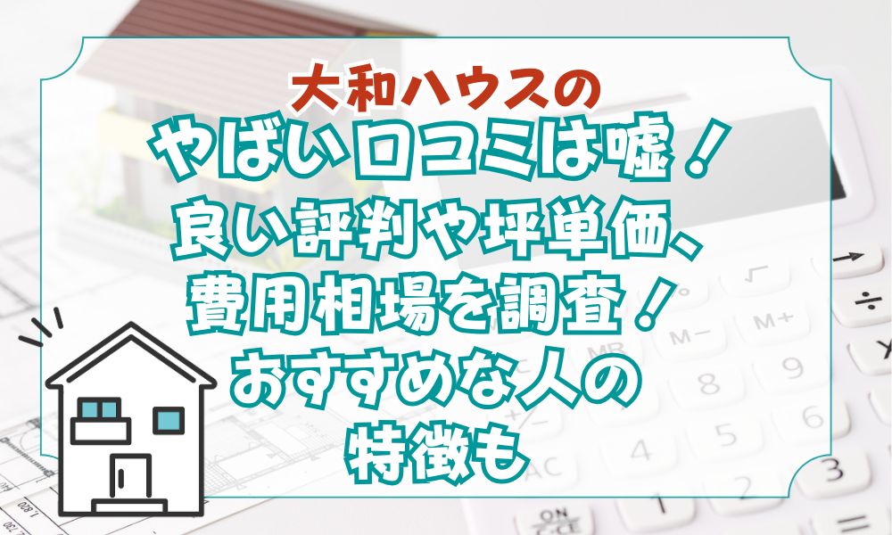 この記事では、「大和ハウスはやばい」というキーワードの真相、大和ハウスの特徴、坪単価、口コミ評判、メリット・デメリット、家づくりのポイントなどを解説しました。